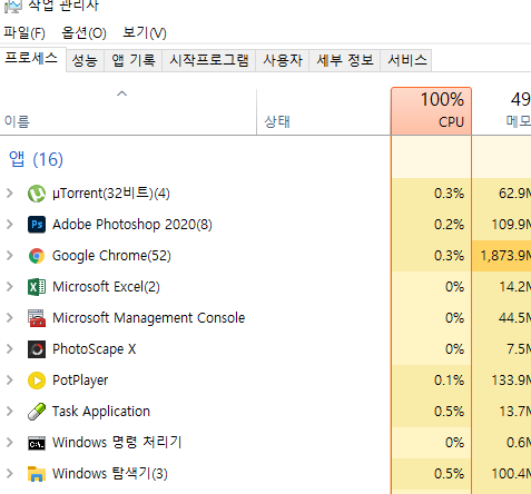 크롬 브라우저가 자꾸 말썽을 일으키는 관계로 작업관리자를 실행해서 메모리 점유율 등의 상태를 보려고 했으나, "관리자가 작업 관리자를 사용하지 못하도록 했습니다"라는 메세지가 뜨면서 실행이 안되네요.