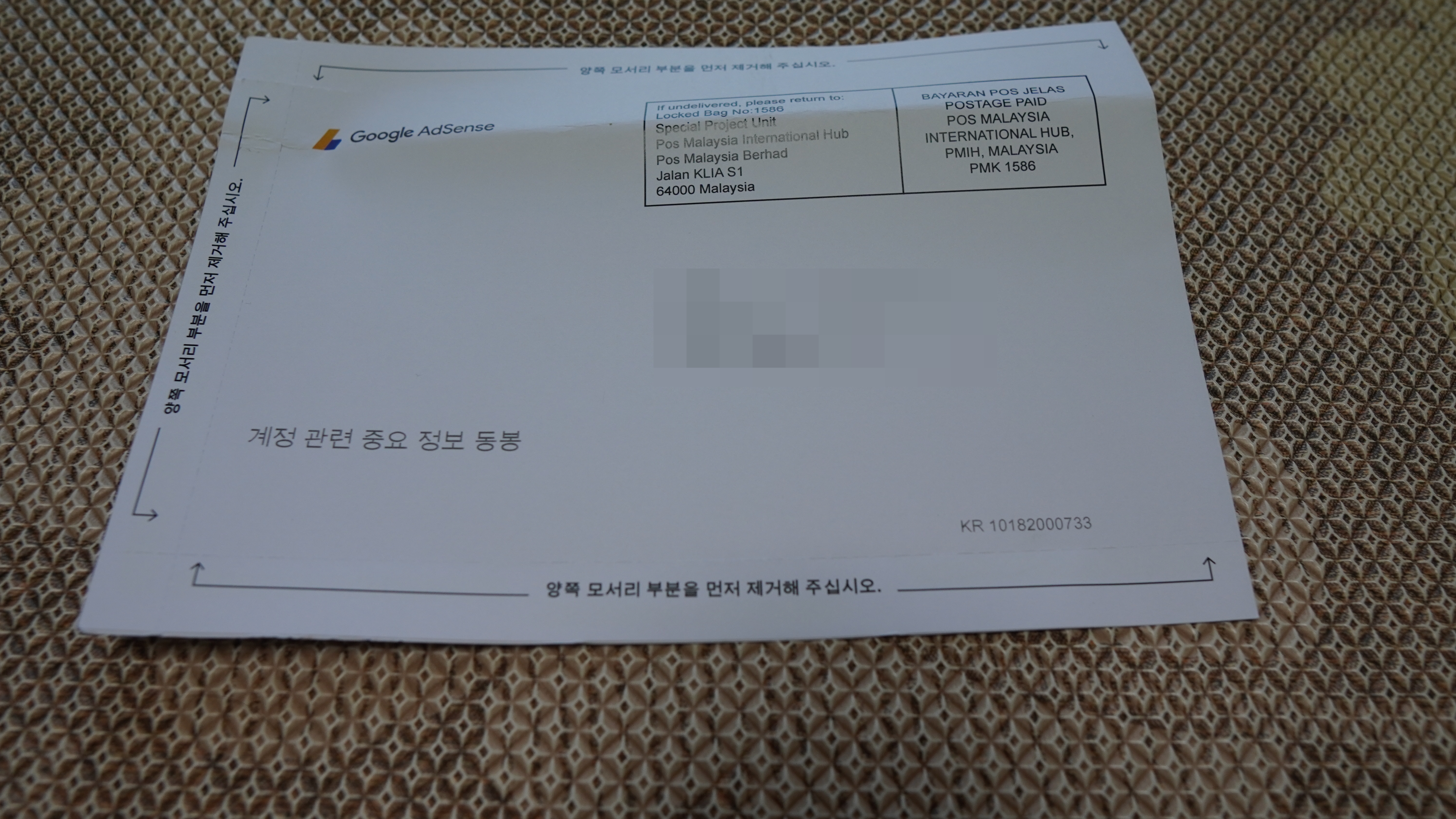 구글 애드센스 핀 번호가 발급되어 우편으로 발송된다는 메일을 받았다고 지난 포스팅에 자랑한 적이 있었는데요.
