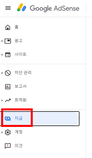 구글 애드센스 화면에서 지급 메뉴를 클릭하고, 결제수단 추가 또는 관리로 이동하여 은행 계좌를 입력합니다.
