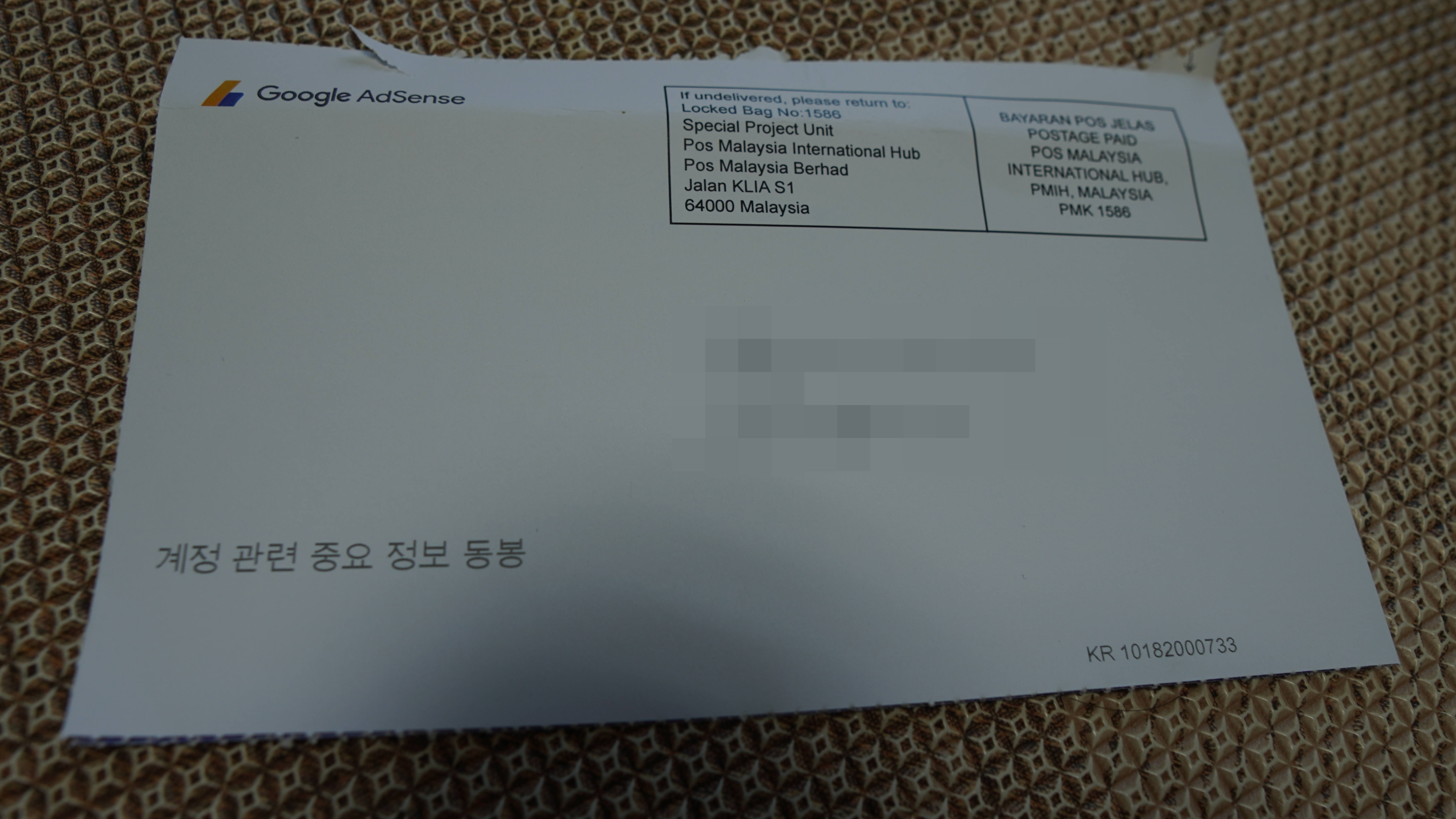 11월 30일! 드디어 구글 애드센스 핀 번호 우편물이 도착을 했습니다.