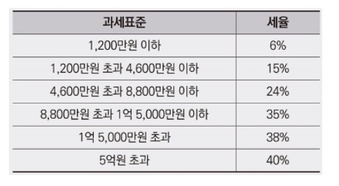 위 표는 종합소득세의 과세표준인데, 인건비 등 경비를 제외하고 매출에서 매입을 차감한 당기순이익(영업이익)이 8800만원을 초과하는 경우 35%의 종합소득세를 내게 된다. 물론 누진세 개념으로 감면을 받는다고는 하지만, 간단하게 1억을 벌었을때 3천5백만원을 내는 것을 순순히 받아들이는 것은 참으로 어렵다. 35%, 38%, 40%의 구간을 생각하다보면 8800만원까지만 벌어야 한다는 생각을 하지 않을 수가 없는 것이 현실이다.