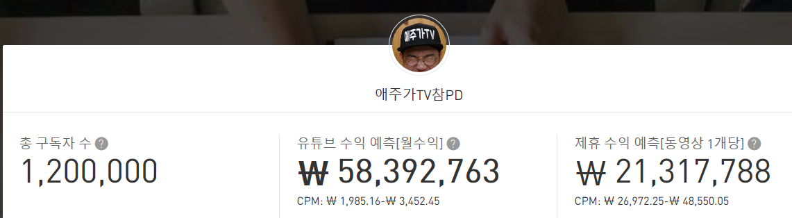 그럼 이제 '애주가TV참PD' 채널의 수익을 구체적으로 알아보도록 하겠습니다.