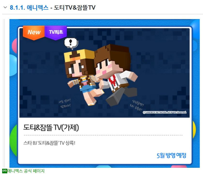 제가 그 존재를 인지하게 된 것은 '도티&잠뜰TV'라는 애니메이션 때부터 였습니다.