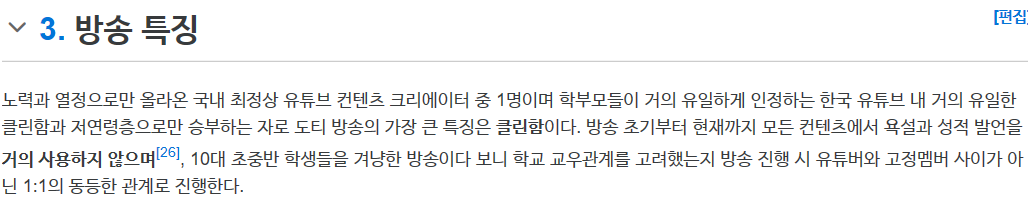 클린함이 특징인 유튜버라고 나와있죠? 주제가 어린 학생들이 보기에 적합한 것이었다면