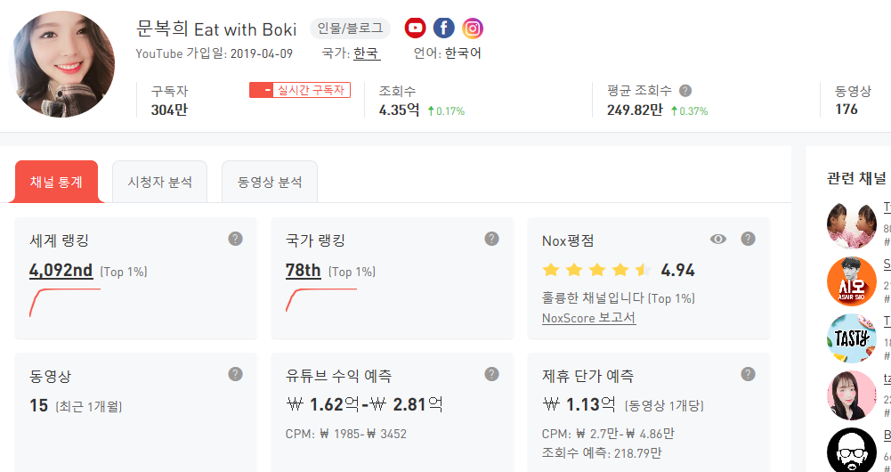 [본 포스팅은 "유튜브 채널 순위와 수익 확인 방법" 글의 세부자료로서 기획, 작성되었습니다]