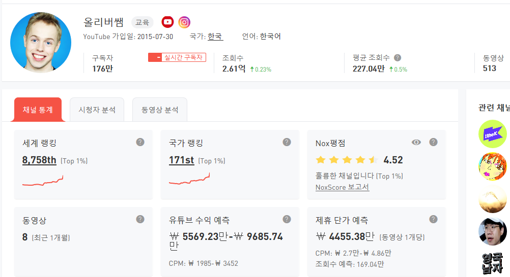 '올리버쌤' 채널에 대해 탐구해보도록 하겠습니다.
