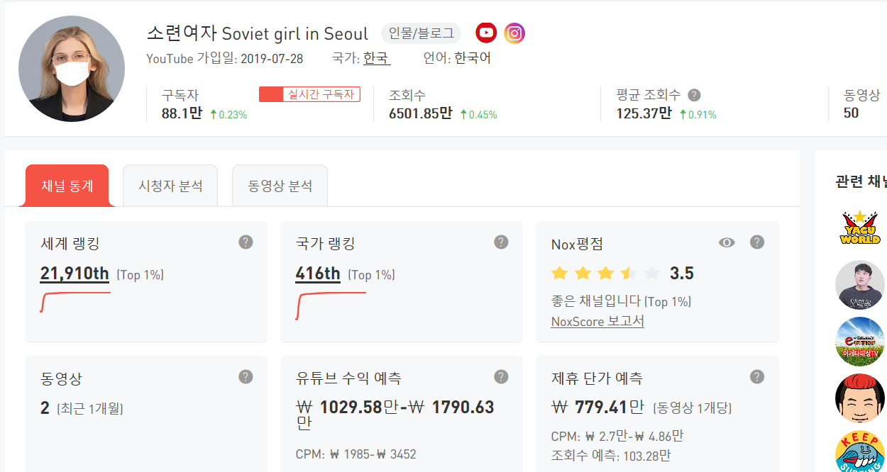 '소련여자 Soviet girl in Seoul' 채널에 대해 탐구해보도록 하겠습니다.