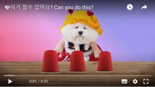 용케도 세개 이상의 종이컵들 속에서 간식이 숨겨진 컵을 찾아내는 일명 '야바위'게임으로 유명해졌고 TV프로그램 등에 출연한 경력이 있습니다. 해외 TV에서도 소개되었다고 하네요.