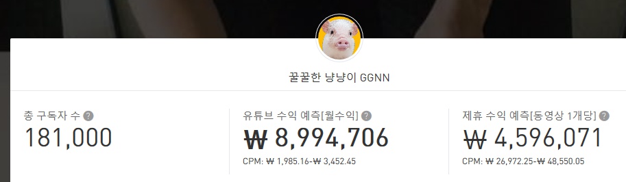 결과적으로 [꿀꿀한 냥냥이]채널이 안정적인 수입을 얻는 것으로 보이는데요.