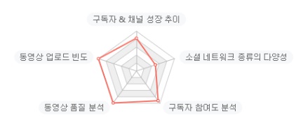 Nox평점은 4.51로 높은 편인데요. 소셜 네트워크 종류의 다양성은 큰 의미가 없는 지표라고 생각되므로 전반적으로 좋은 평가를 받고 있는 유튜버라고 볼 수 있겠습니다.
