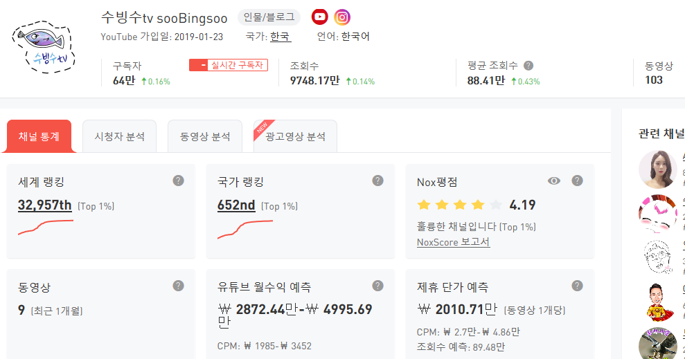 [본 포스팅은 "유튜브 채널 순위와 수익 확인 방법" 글의 세부자료로서 기획, 작성되었습니다]