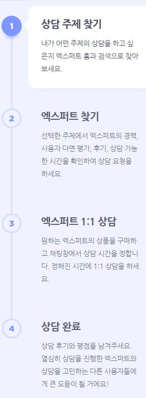 원하는 분야의 깊이있는 지식을 보유한 전문가와 상담하는 기능인