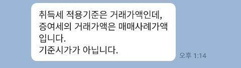 취득세의 적용기준이 공시지가가 아니냐는 저의 질문에