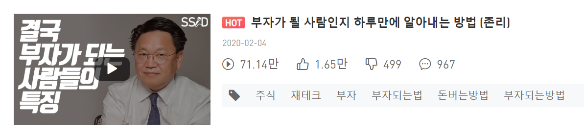 신사임당을 검색하는 사람도 존리님이 출연한 영상을 볼 것이고